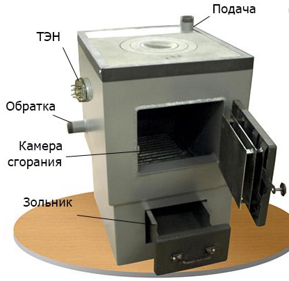 - Petites tailles. Le dispositif a une chambre de combustion surdimensionnée pour brûler des gaz, un échangeur de chaleur avec un élément chauffant intégré ou un autre type de dispositif de chauffage;