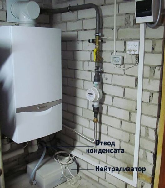 Si la chaudière est installée dans un chalet avec une fosse septique ou des COV, le condensat doit d'abord être neutralisé. Sinon, il tuera toute la microflore du système de traitement autonome.