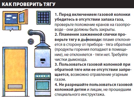 pour vérifier les causes du problème, vous devez déconnecter la colonne et vérifier le tirage de la même manière uniquement dans la cheminée. Après cela, il deviendra clair s'il y a des dysfonctionnements dans le conduit de cheminée ou à l'intérieur de la colonne aussi.