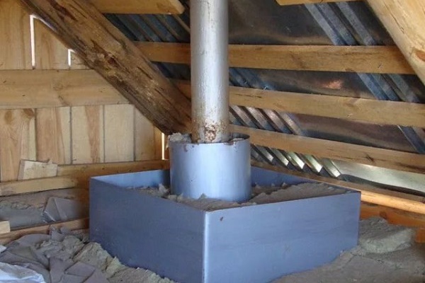 Pour cela, des revêtements incombustibles sont utilisés, fabriqués en tôle d'acier pour toiture posée sur un joint réfractaire, tel que l'amiante. L'épaisseur de la feuille de ce dernier ne peut être inférieure à 3 mm.