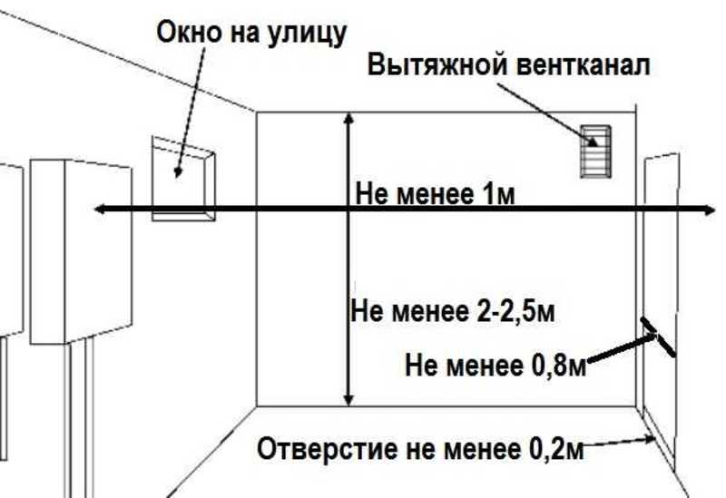 Pour les appareils de chauffage dont la puissance varie de 30 à 60 kW, un volume de fournaise de 13,5 mètres cubes sera nécessaire. m et au-dessus. Si le radiateur sera placé dans l'appartement, il est généralement installé dans la cuisine.