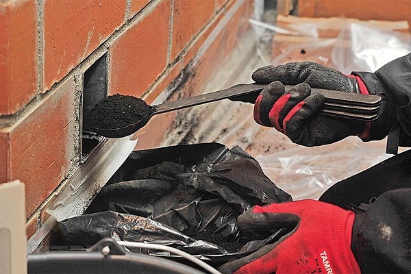 Toutes les opérations de nettoyage sont effectuées avec soin. Un journal, une toile cirée ou un chiffon épais est recouvert sur le sol. La suie tombée au sol est d'abord récupérée avec un aspirateur ou avec un balai sec, un chiffon. Une fois que tout est collecté, lavez la surface.