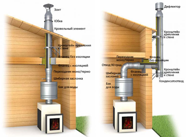 La documentation normative définit les endroits où il est permis d'installer des cheminées. Le matériau des murs doit être incombustible, mais si cette condition n'est pas remplie (par exemple, dans un bâtiment avec des murs en bois), pour l'installation, à des fins de protection, des tuyaux ou des tuyaux en couronne doivent être utilisés.