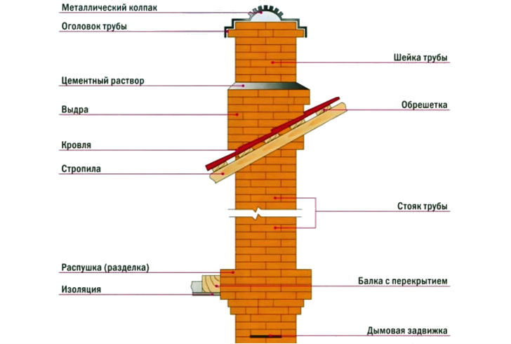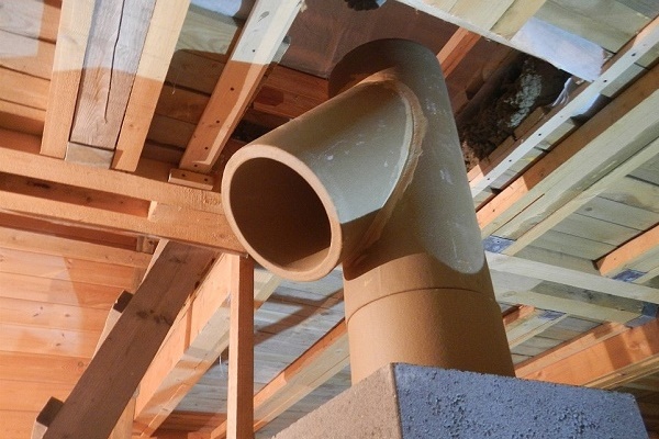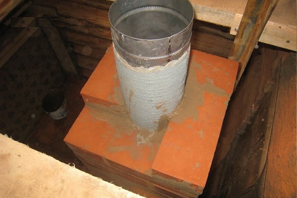 Lorsque la cheminée passe à travers le plafond, une peluche est disposée, ce qui est un épaississement. L'épaississement suivant d'une configuration similaire est construit pendant la transition tuyaux à travers le toit. Il s'appelle "une loutre».
