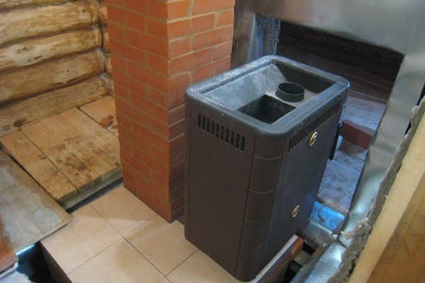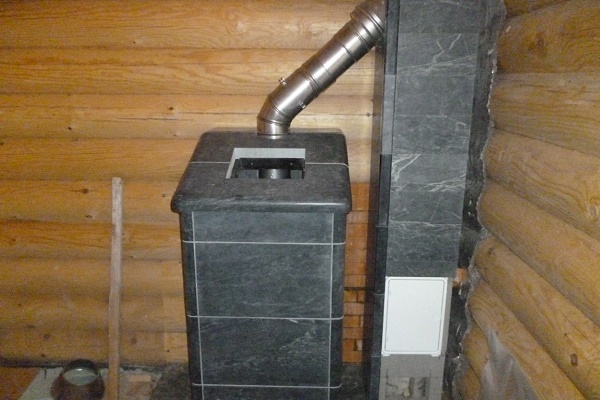 Le schéma d'installation interne est souvent utilisé dans les bains, car un tuyau en acier peut chauffer simultanément des pierres et un réservoir d'eau. Si la baignoire n'est pas installée séparément, mais est une extension de la maison - c'est l'option la plus appropriée et la plus efficace.
