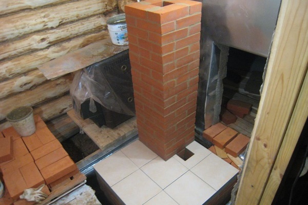 Si la chaudière est installée ou le four est terminé, vous pouvez commencer à construire une cheminée en brique. La procédure de travail est traditionnelle: appliquer le mortier, puis installer la brique, l'ajuster par rapport aux parties voisines avec vos mains et un petit marteau.