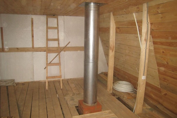 Lors de l'installation d'une cheminée en acier à l'intérieur du bâtiment, les ouvertures dans les plafonds et le toit ont un diamètre beaucoup plus petit que pour les homologues en brique ou en céramique.