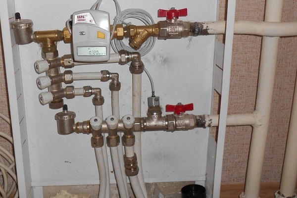 - installation d'un compteur de chaleur sur un circuit d'appartement. Avec une distribution de chauffage horizontale, son équipement avec un compteur de chaleur est une tâche simple.