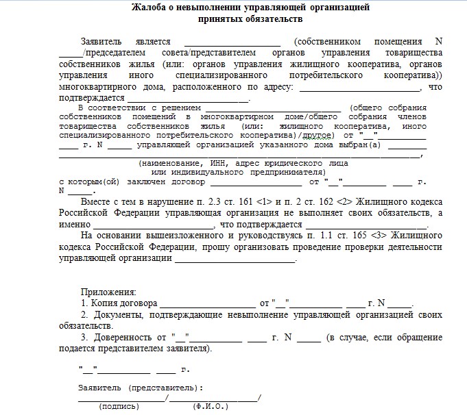 Vous pouvez rédiger l'appel en utilisant le texte qui a été compilé pour la plainte auprès du GLC. Il est nécessaire d'apporter de petites corrections, indiquant une violation des droits des consommateurs, car la société de gestion ne remplit pas ses obligations.