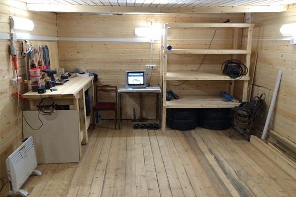 Garage - salle polyvalente. C'est où une voiture ou une moto est stockée. Ici, en règle générale, il y a une cave avec des blancs pour l'hiver, ainsi qu'un atelier de réparation impromptu.