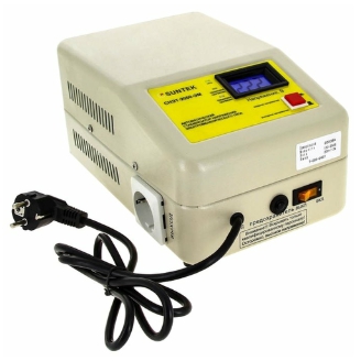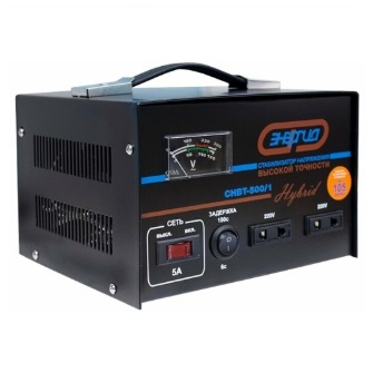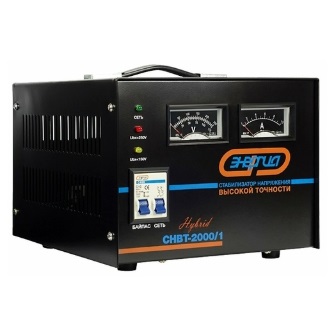 Dans le modèle de l'Hybrid SNVT-2000/1, une unité de contrôle en continu et une unité de contrôle électronique discrète sont installées. Ce dernier commence à fonctionner lorsque des surtensions ou des affaissements extrêmes sont enregistrés dans le secteur, la plage de valeurs critiques est de 105 à 280 V.