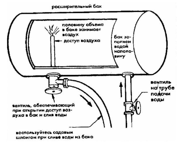 Aussi remplissage correct du contour contribue également à une élimination plus rapide de la partie des masses d'air dissoutes dans le liquide de refroidissement. Pour commencer, il est logique de considérer un exemple de remplissage d'un système de chauffage ouvert, au point le plus élevé duquel se trouve un vase d'expansion.