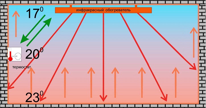 Pour le chalet a choisi ce type de chauffage. Pour le prix de l'opération, il ressort rentable. La chaleur d'eux est agréable, sans la sensation d'un courant d'air et des odeurs. Il y a aussi des inconvénients: vous devez vous assurer qu'en aucun cas il ne vise une personne immobile dormant, par exemple, ou travaillant, car il peut surchauffer assez désagréablement. Nous suspendons au-dessus de l'entrée des chambres, de manière optimale, à mon avis.