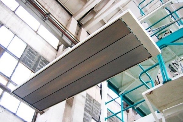 Les modèles de plafond d'émetteurs infrarouges sont situés à une hauteur de 3 mètres et plus. Avec cette disposition, le plafond chauffant descend et diverge légèrement sur les côtés.