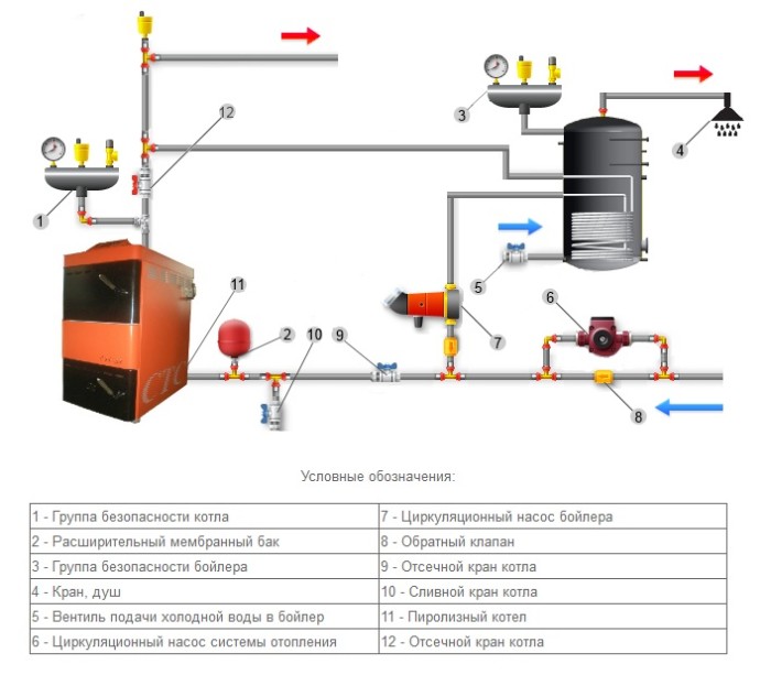 Une situation similaire se produit lors de l'utilisation chaudière à chauffage indirect. Surtout s'il y a une pompe séparée pour l'équipement, s'il n'y a pas de réservoir tampon, d'hydro-flèche ou de peigne de distribution.