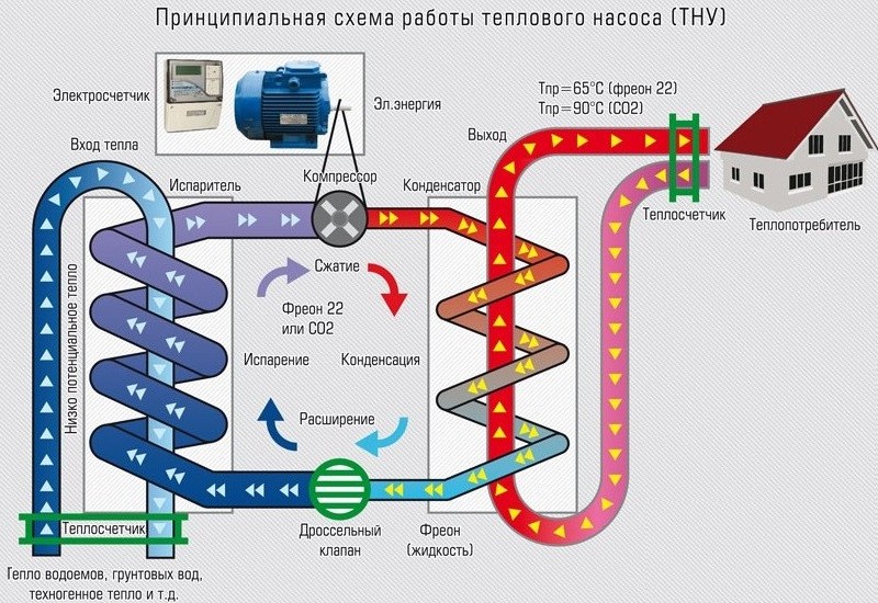 Seule la pompe à chaleur ne refroidit pas l'air, mais le chauffe. De plus, il génère toute l'énergie thermique nécessaire grâce à l'utilisation judicieuse des ressources naturelles gratuites et des phénomènes.