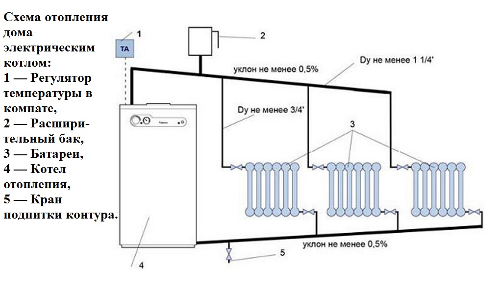 Un tel système fonctionne en exploitant la capacité de l'eau à se dilater lors du chauffage. Le fluide chaud monte, déplaçant l'eau refroidie du circuit. Il retourne à l'échangeur de chaleur, se réchauffe, remplace le liquide refroidi, etc. La chaudière électrique dans ce cas est placée dans la partie inférieure du circuit.