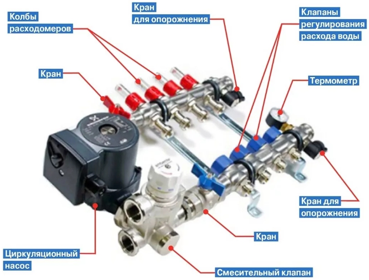 Dans tous les cas, un peigne hydraulique contenant une telle unité sera nécessaire pour la bonne installation de ce type de chauffage. Le contrôle du chauffage est effectué à l'aide d'un capteur de température qui détermine la température actuelle du liquide de refroidissement.