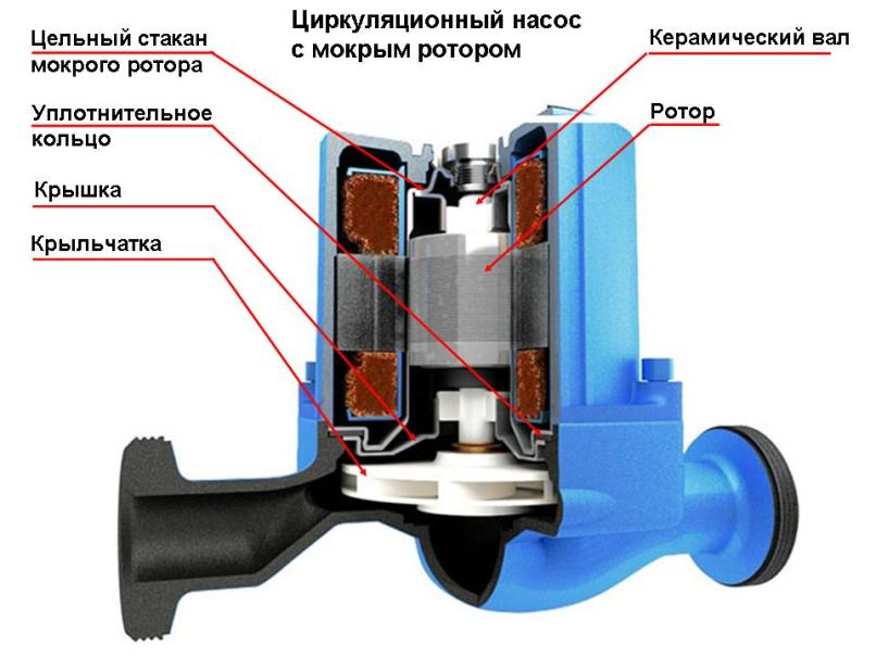 Selon les caractéristiques de conception, les pompes à circulation forcée sont divisées en unités de pompage à rotor humide et en appareils à hautes performances à rotor sec.