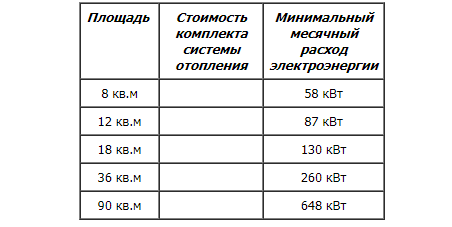Je peux vous dire que le système de chauffage PLEN, en principe, peut être installé dans des pièces de n'importe quelle zone. Mais même pour chauffer des locaux d'une superficie de 90 mètres carrés. m la consommation d'énergie mensuelle minimale sera de 648 kW. Autrement dit, cette méthode de chauffage n'est pas bon marché, surtout s'il est nécessaire de chauffer la pièce sur 100 mètres carrés. m