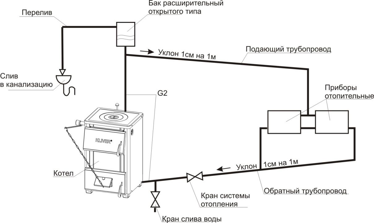 Les exigences sont expliquées par les caractéristiques du fonctionnement des systèmes de chauffage par gravité. Le caloporteur chaud se déplace de la chaudière à travers les tuyaux et atteint le vase d'expansion, après avoir perdu une partie importante de l'énergie thermique.
