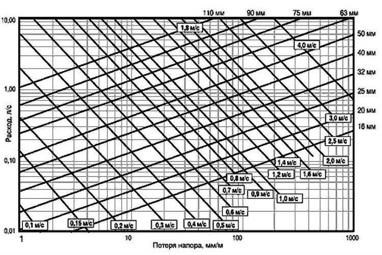 Selon le calendrier, la perte de pression dans l'appartement avec un diamètre de tuyau de 20 mm sera de 70 mm / m, et en tenant compte de la longueur de la canalisation de 50 m à 3,5 mètres. Ce chiffre doit être multiplié par un facteur de 1,3 à 2,2, en tenant compte de la résistance des vannes d'eau.