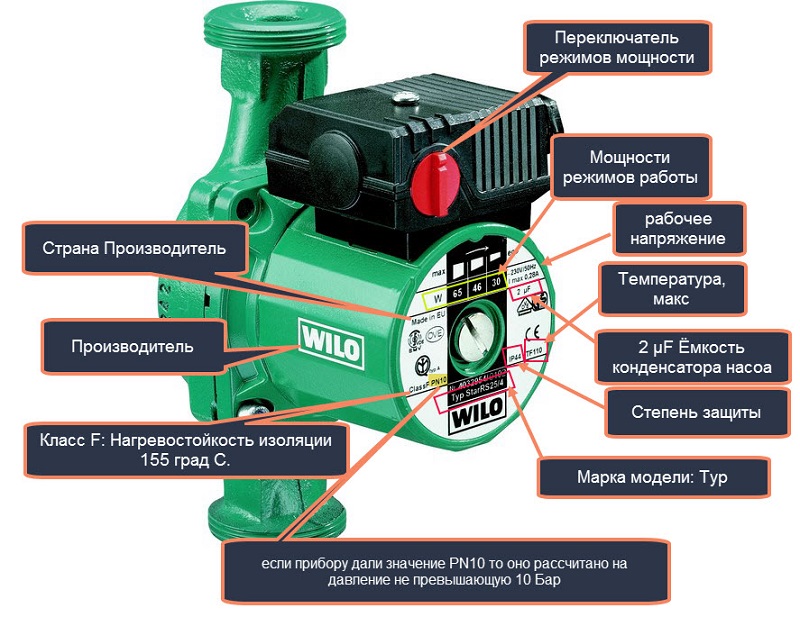 Malheureusement, il n'y a pas d'exigences d'étiquetage unifiées pour les pompes de circulation. Les fabricants choisissent indépendamment une liste de spécifications techniques qui sont indiquées sur l'appareil.