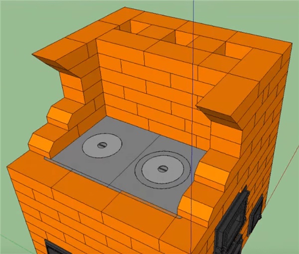 Si vous avez besoin d'un poêle pour cuisiner, ils se dispensent de la cheminée verticale habituelle, mais une plaque de cuisson est disposée au-dessus du foyer. En dessous, vous pouvez également faire un four. Pour créer une version combinée d'un tel poêle, une plaque de cuisson et une cheminée qui retiennent la chaleur sont utilisées.