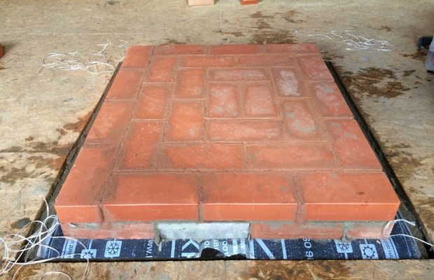 La cinquième rangée s'effectue de la même manière que la quatrième. Du sixième au huitième, la maçonnerie continue de se répéter, mais laisse un espace pour la porte de la chambre de combustion.