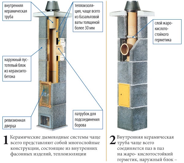 Les cheminées en céramique se distinguent par une durabilité inégalée et un prix élevé. Ils n'ont pas peur de la surchauffe, de l'agressivité de la suie et de la corrosion. Ces tuyaux ont des parois très lisses, de la suie sur laquelle ne s'attarde même pas.