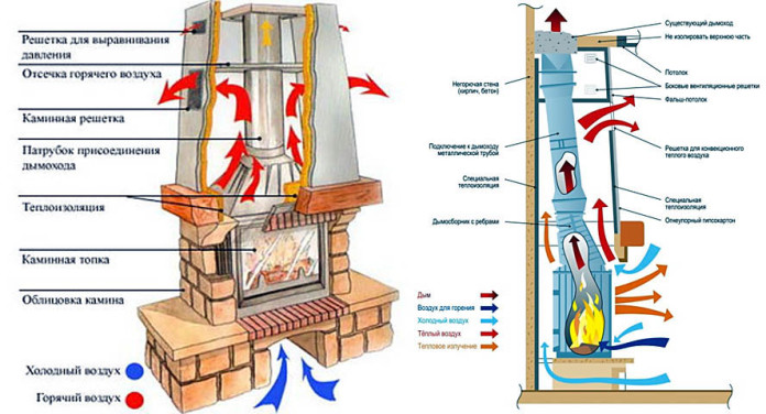 Les cheminées en brique sont construites principalement à l'aide de combustibles solides. Ils sont satisfaits du montage, c'est-à-dire installé au plafond du poêle, indigène sous la forme d'une sortie verticale construite séparément, et mur - situé à l'intérieur du mur de soutien.