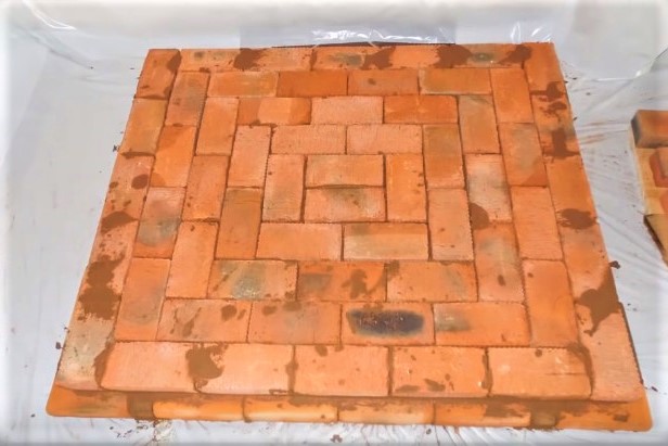 16 rangs - répétition de la 14e rangée du contour extérieur. La maçonnerie en argile réfractaire est érigée autour de la voûte.