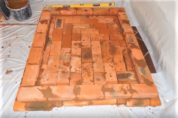Ici, la première rangée de briques d'argile réfractaire est disposée - c'est une inondation. Le capot arrière est doublé d'un ourlet.