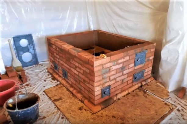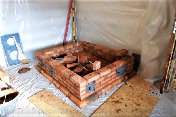 15 rangs - répétition de la 13e rangée. Préparation de la fondation pour la construction de l'arche du four et sa construction. L'arche doit être faite strictement le long du rayon.