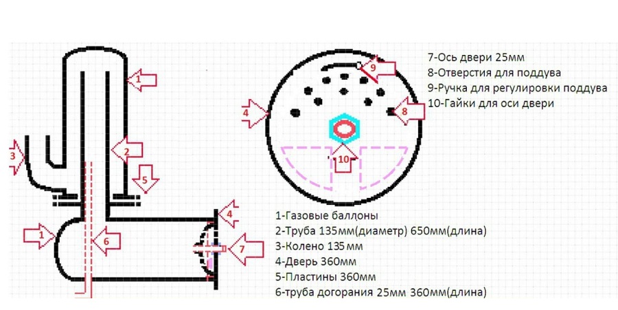 Sur notre site, il y a aussi une instruction plus détaillée avec des diagrammes et des dessins pour la fabrication pots de bouteille de gaz.