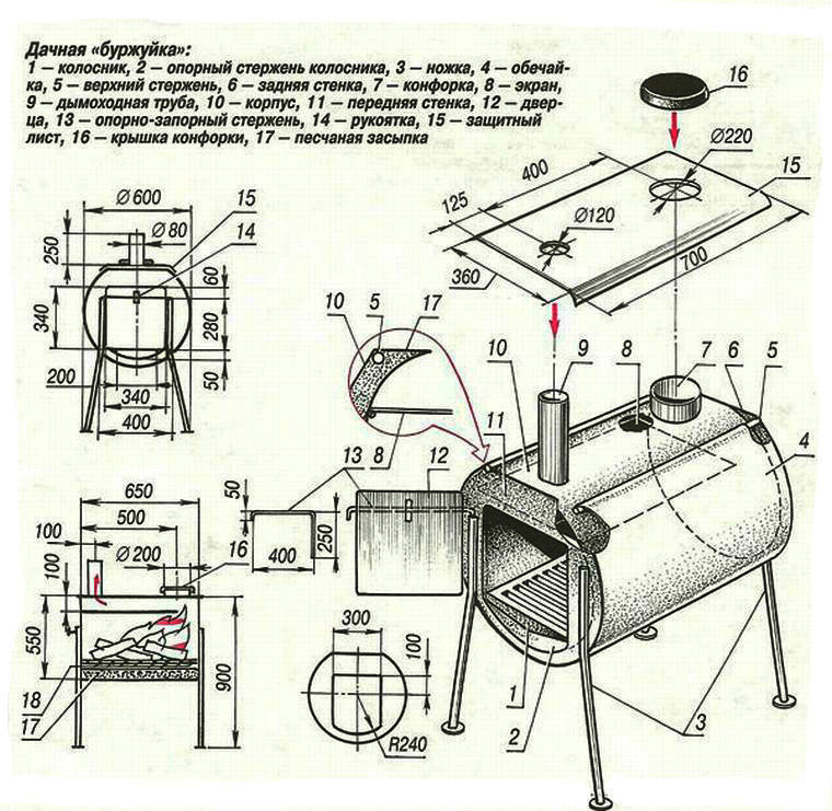 Poêle à faire soi-même: un schéma d'un poêle fait maison pour une maison d'été et un garage