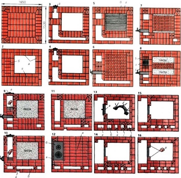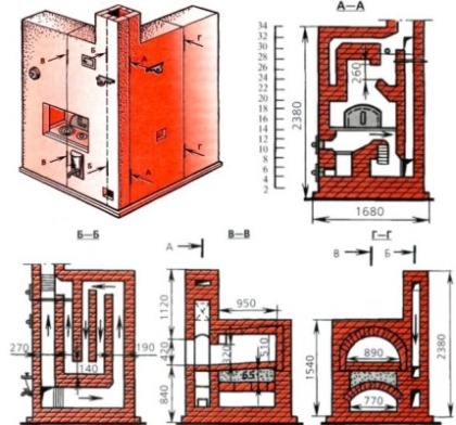 Poêle russe avec poêle: technologie de maçonnerie du poêle russe avec schémas et procédures détaillées