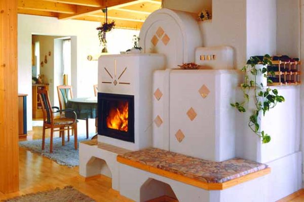 La construction du four est calculée pour qu'il chauffe la maison.Pour cela, une structure en brique est érigée au centre du bâtiment ou positionnée pour que la chaleur pénètre dans les pièces adjacentes. Si le bâtiment est petit, il y a suffisamment de chaleur pour que la température dans toutes les pièces soit confortable pour vivre.