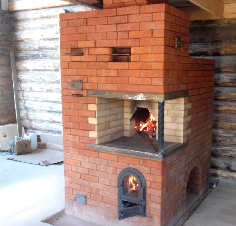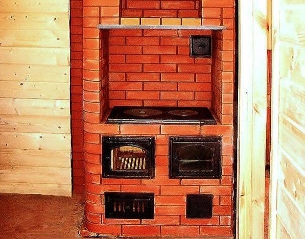 Particularités de la première option - la présence d'une chambre de cuisson avec un poêle en fonte, un four et un trou de ventilation.
