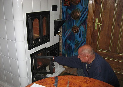 Dans les villages, mais de moins en moins, on peut encore trouver des poêles chauffés «noirs», c'est-à-dire qui n'avaient pas un élément structurel tel qu'un tuyau. De la fumée sortit par la fenêtre du foyer et monta jusqu'au plafond, puis partit vers la bouche d'aération - le porche au-dessus de la porte d'entrée.