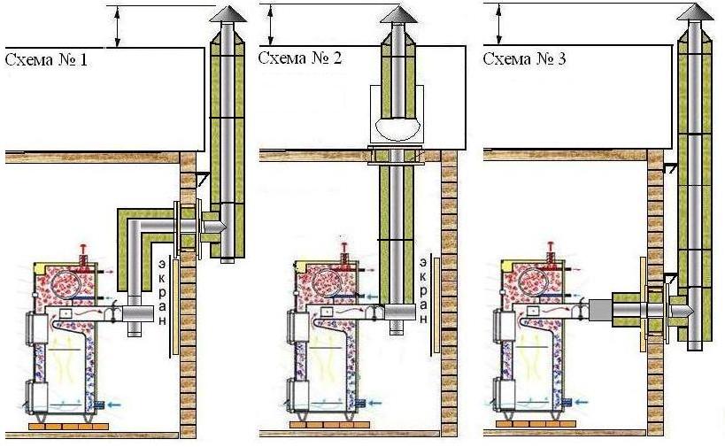 - une section presque horizontale de la cheminée (avec une pente de 2 °), mais pas plus d'un mètre, peut sortir de la chaudière.