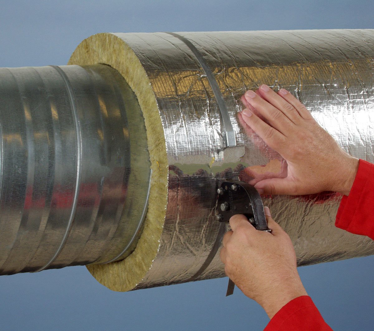 Le travail se réduit à fixer à l'extérieur du tuyau une couche de laine minérale. Avant de commencer les travaux, le tuyau doit être nettoyé de la poussière et une couche d'isolant enroulé doit être fixée avec des colliers. Étant donné que la laine minérale est capable d'absorber l'humidité, il est recommandé de la cacher sous un boîtier en acier galvanisé.