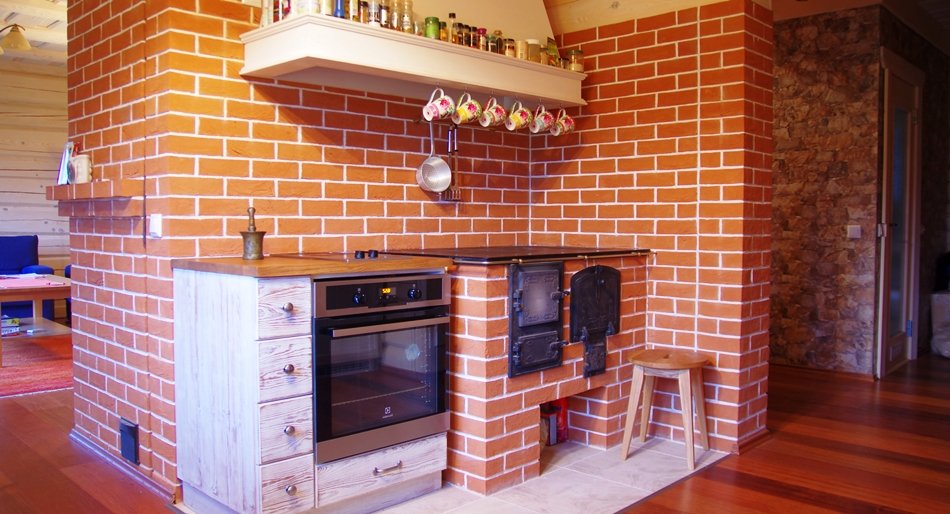 Cuisinière le plus souvent installé dans de petites cuisines indépendantes. La chaleur de la combustion du bois de chauffage est plus que suffisante non seulement pour cuisiner, mais aussi pour chauffer une telle pièce.