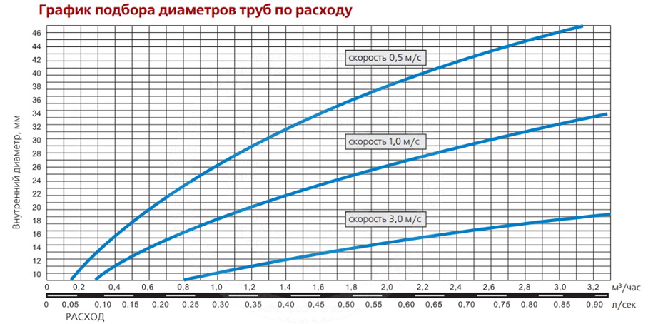 La vitesse calculée du liquide de refroidissement dans le système est précisément ce paramètre qui vous permet de sélectionner un diamètre de tuyau spécifique pour le système de chauffage.