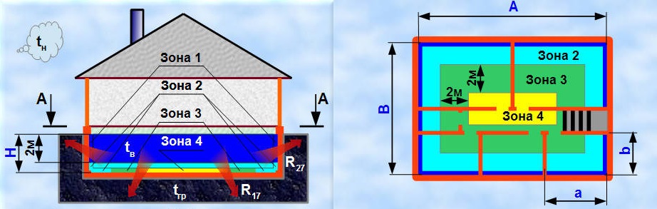Séparément, il est nécessaire de s'attarder sur le calcul de la perte de chaleur à travers le sol du bâtiment, car le sol a une résistance importante au transfert de chaleur.