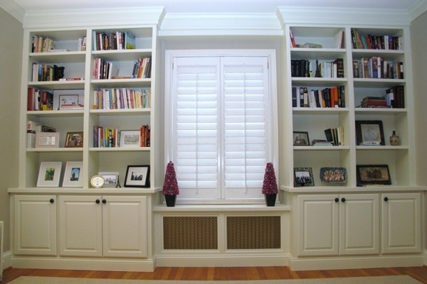 Une boîte peut devenir non seulement une décoration et un déguisement de batterie de chauffage, mais aussi porter une charge fonctionnelle ou esthétique. Si vous envisagez l'option avec fonctionnalité, vous pouvez, par exemple, utiliser des feuilles de panneaux de particules et des guides pour fabriquer une armoire dans toute la largeur de la pièce.