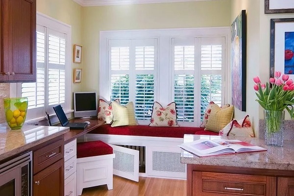 Dans la cuisine, les radiateurs sont le plus souvent masqués sous le rebord de la fenêtre. Cette technique permet non seulement de masquer le radiateur, mais également d'augmenter considérablement la surface de travail. Si nous parlons d'un appartement de petite taille, cette technique peut être considérée comme un bonus important. Il est déjà difficile de discuter ici quel aspect est le plus important - fonctionnel ou esthétique.