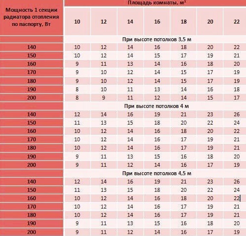 Il existe une formule classique pour calculer la puissance requise d'une batterie de chauffage en fonte, en fonction du volume de la pièce: tous les 25-30 m3 des radiateurs d'une puissance totale de 1 kW doivent être installés. En présence de 2-3 murs extérieurs, cet indicateur doit être réglé dans le sens d'une augmentation de puissance. Pour plus d'informations sur la façon de calculer le nombre requis de batteries pour le chauffage, lisez ce truc.