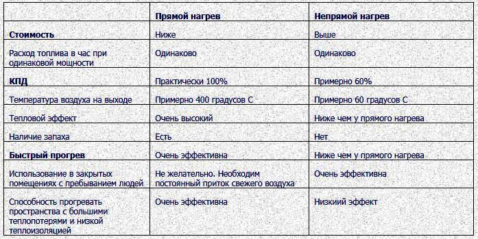 Les pistolets à chauffage direct ont un haut niveau d'efficacité - près de 100%, la température de l'air à la sortie peut atteindre 400 ° C.