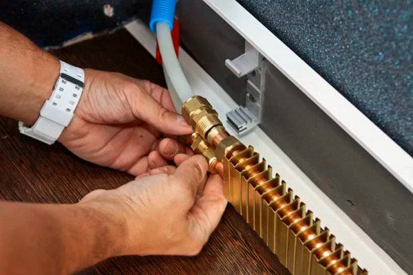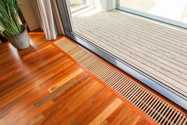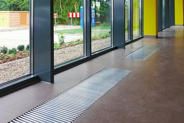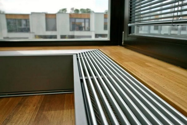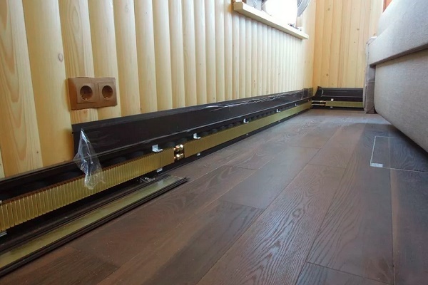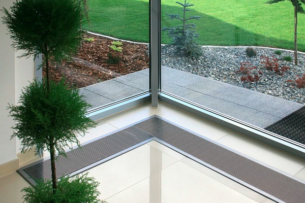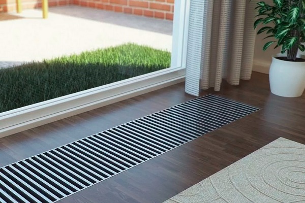 Étant donné que les radiateurs de ce type sont situés dans un évidement du sol, ils appartiennent à un type de système de chauffage caché.Par conséquent, sans prendre de place, ils chauffent tranquillement la pièce.
